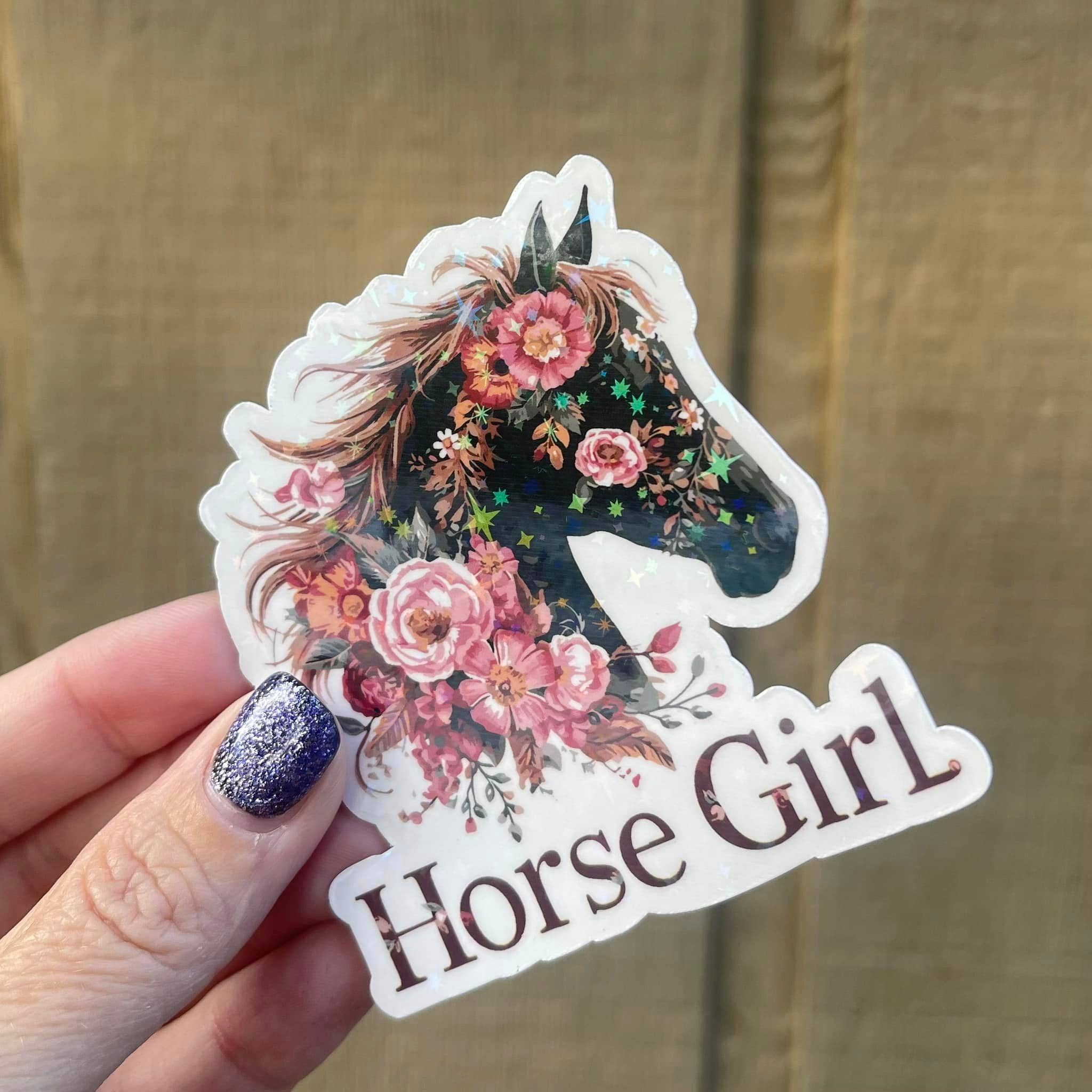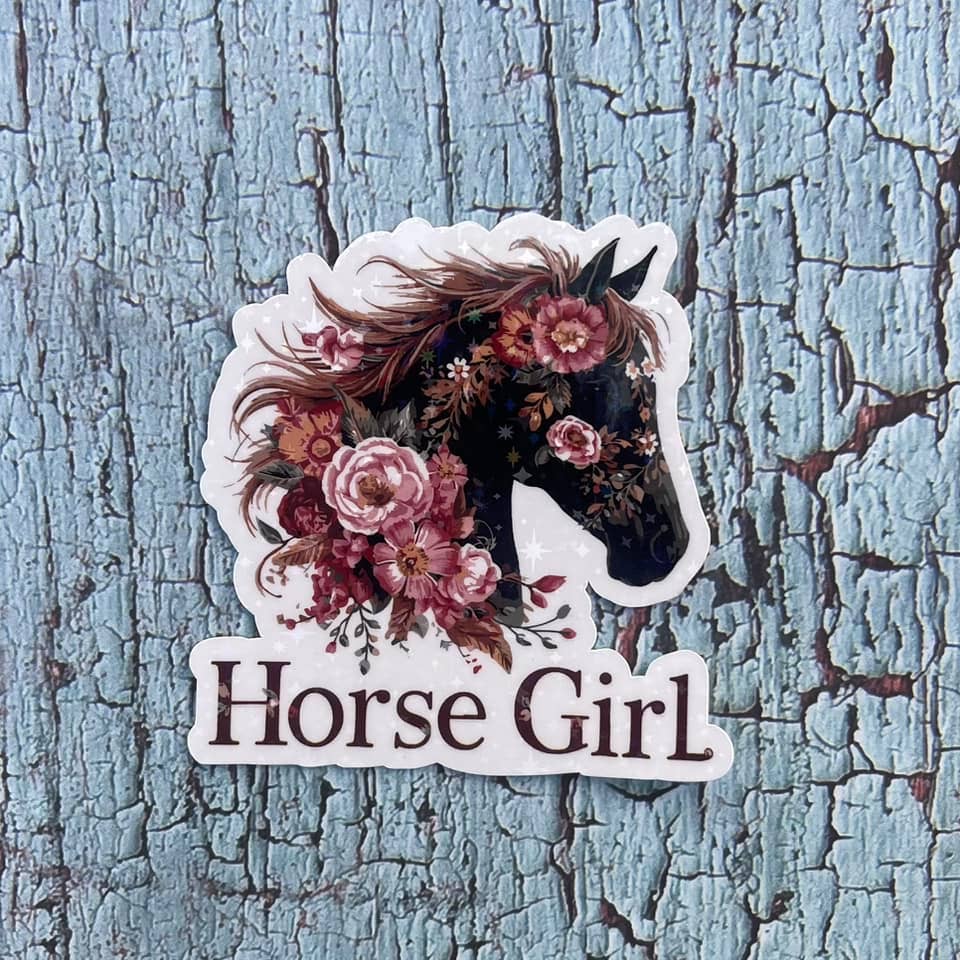 Roses & Horse Girl Flowers Die Cut Vinyl Sticker