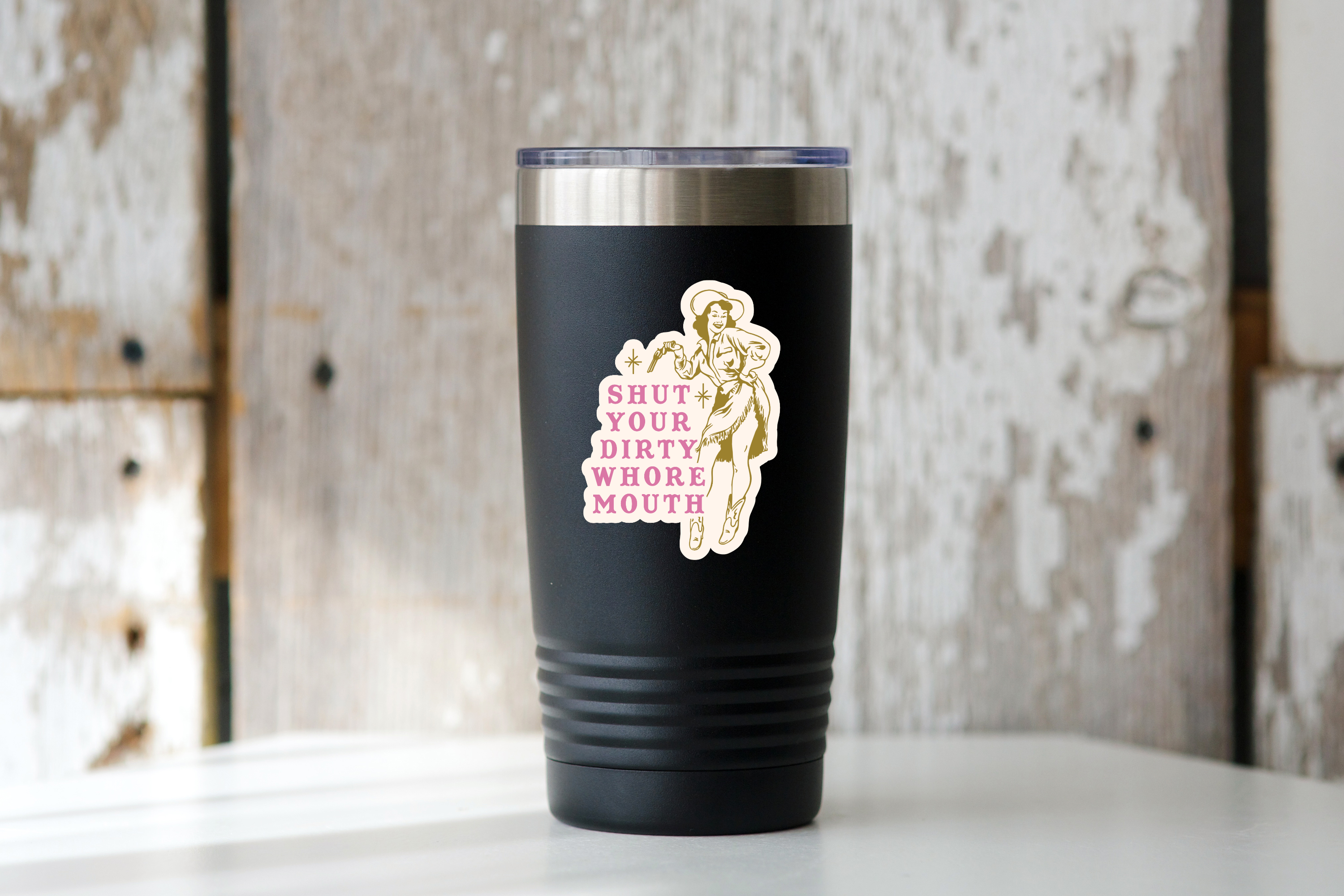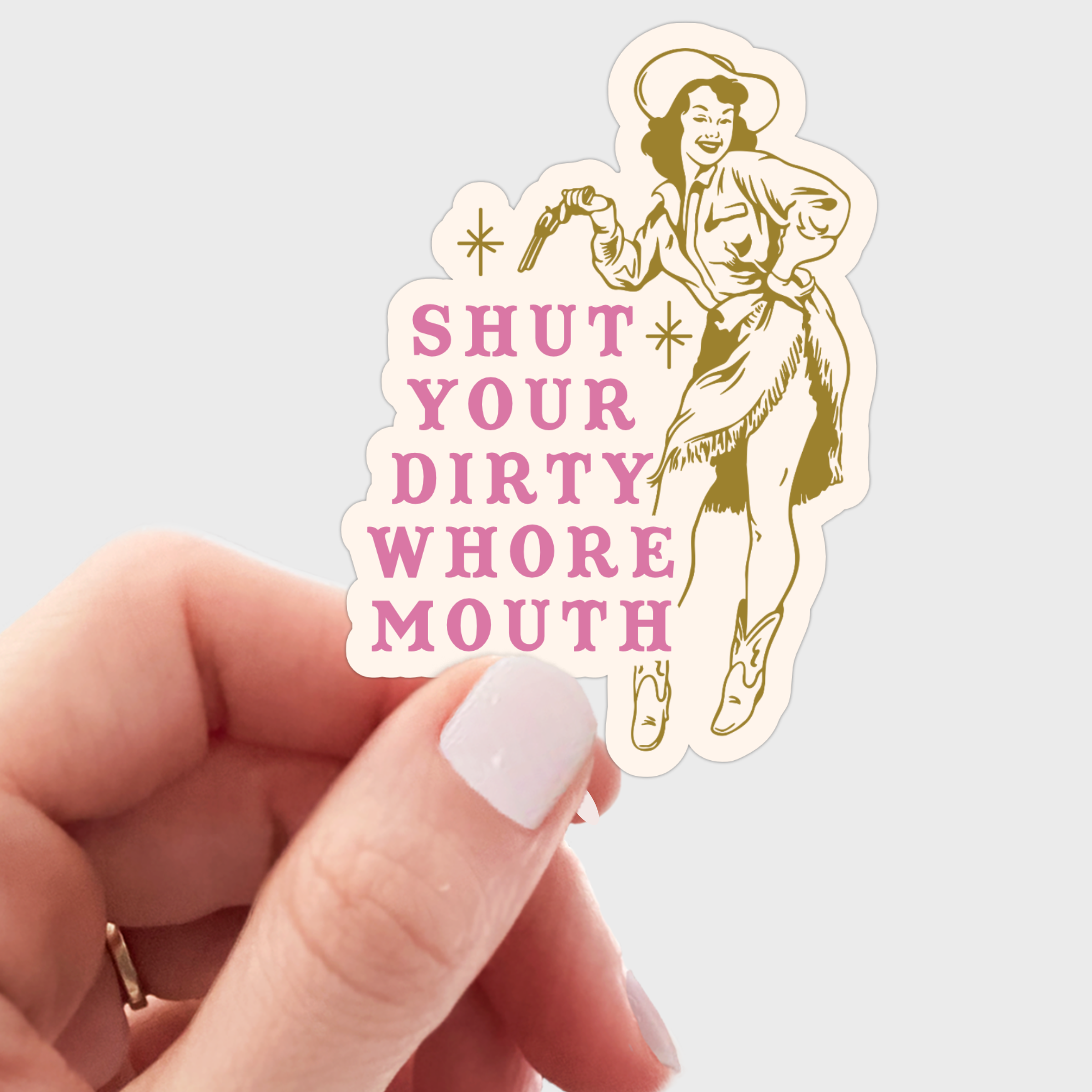 Shut Your Dirty Whore Mouth Sticker - funny, snarky, cowgirl