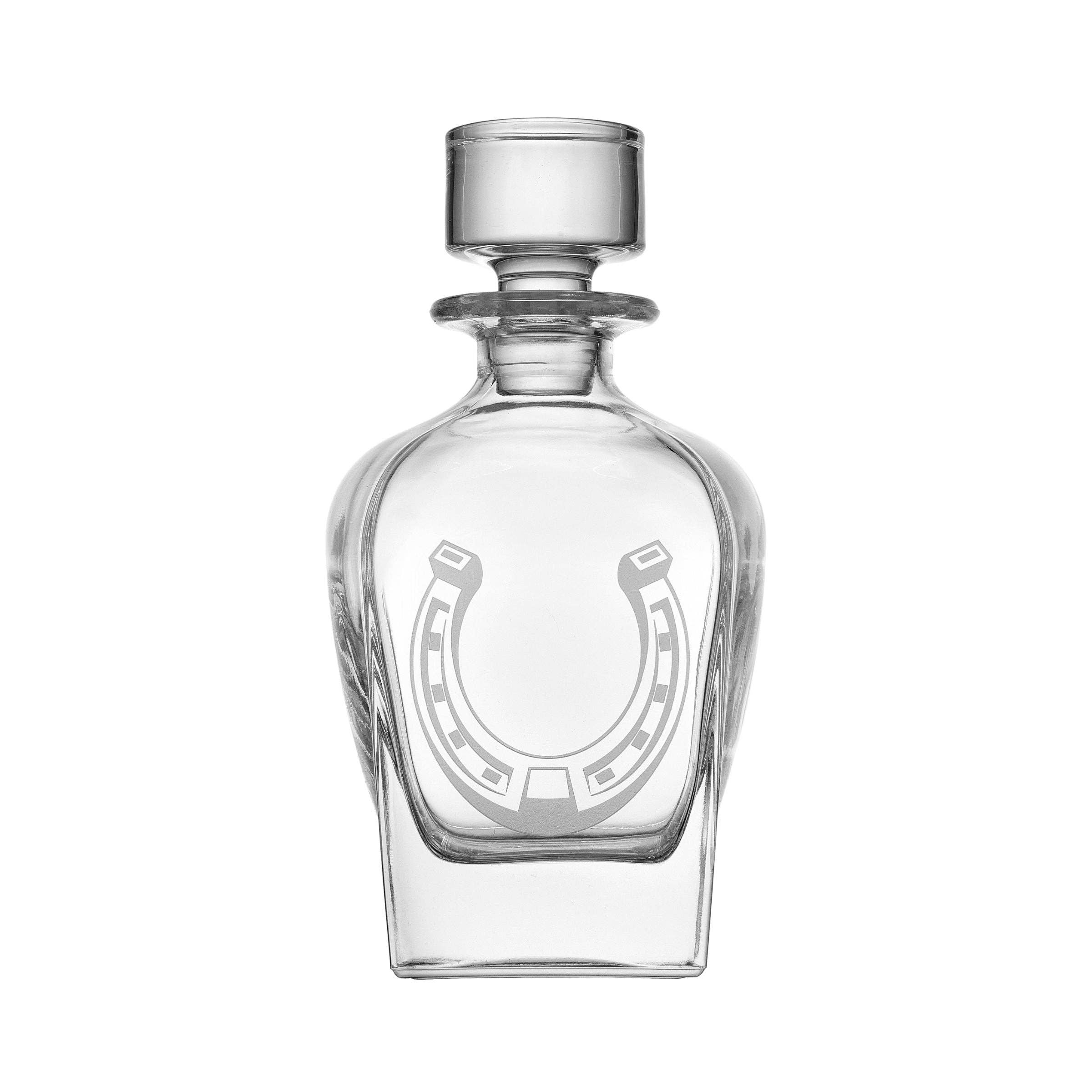 Elegant decanter featuring smooth, curved lines and a bold horseshoe emblem on the front. This classic design blends Western charm with timeless sophistication, making it the perfect vessel for your favorite spirits. Crafted from quality materials, it brings lasting style and character to any barware collection.