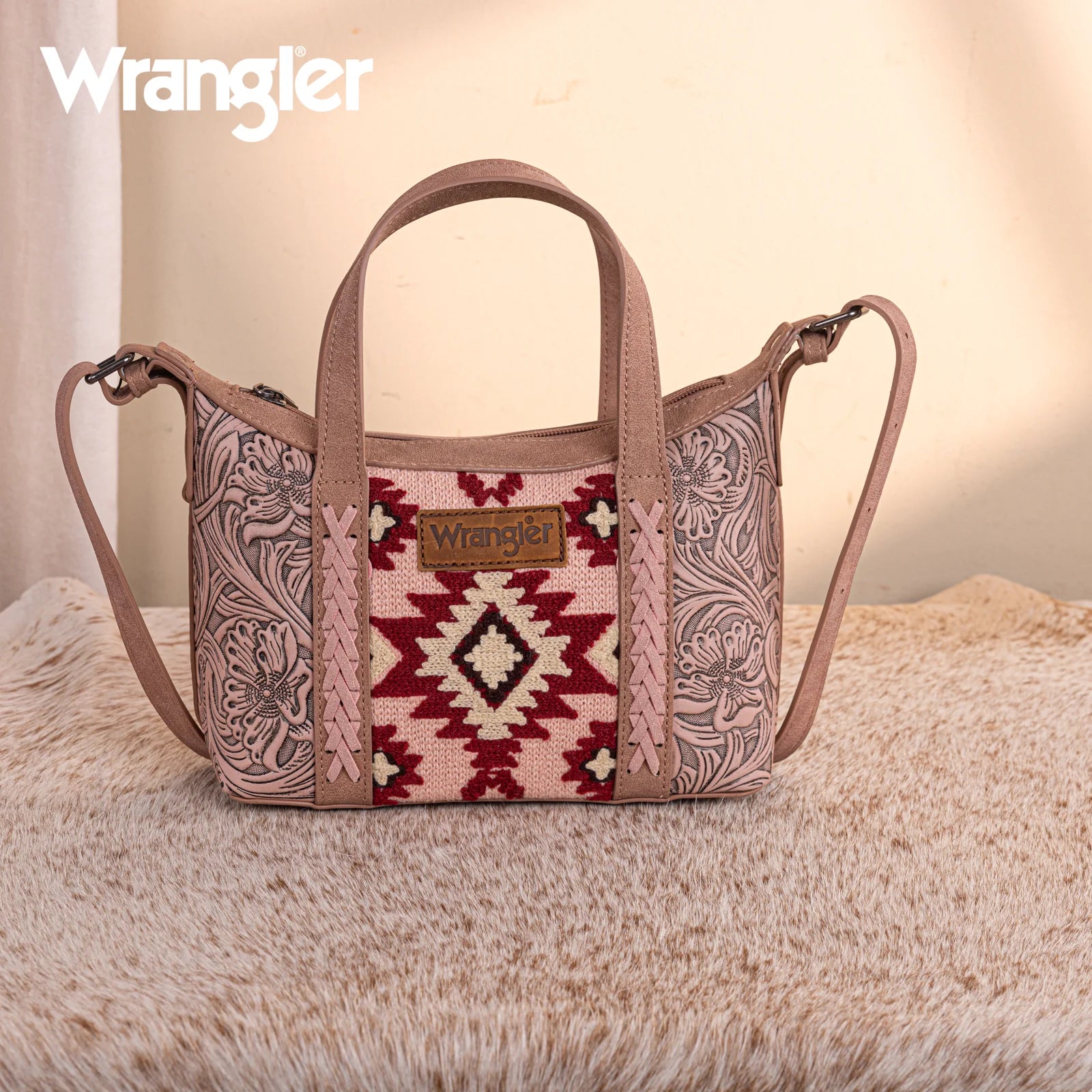 Wrangler Pink Tooled Aztec Pattern Print Tote/Crossbody - WG226-8605