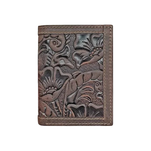 Wrangler Tooled Leather Brown Tri-Fold Wallet 7605001