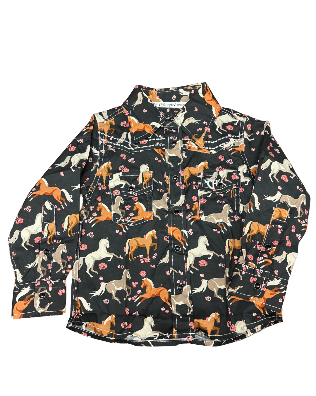 Girl's Flower Horse Print Long Sleeve Shirt - 825676-010-T