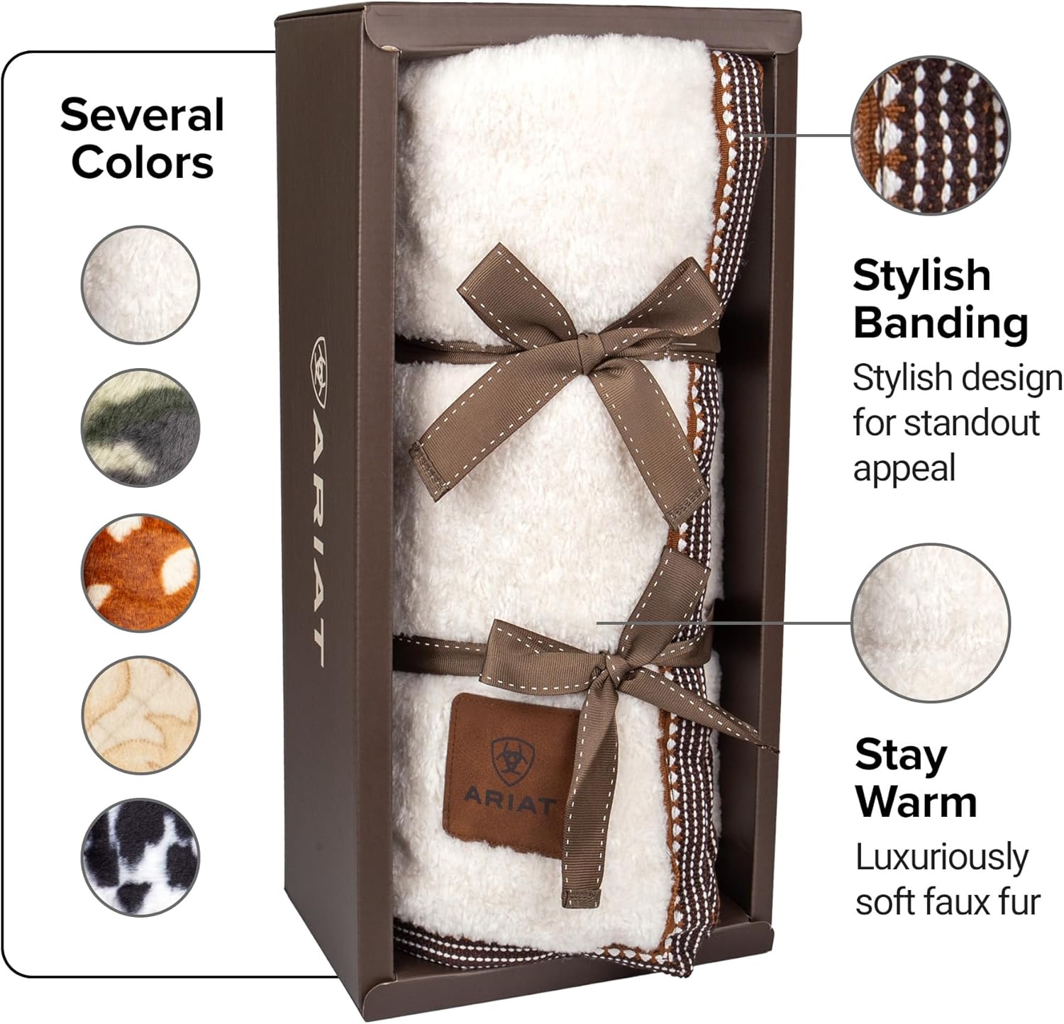 - SOFTNESS AND COMFORT - You'll pass cool mornings and evenings in comfort with the Ariat fall and winter blankets; Each blanket is made from luxuriously soft faux fur on the outside with snuggly soft polar fleece on the inside