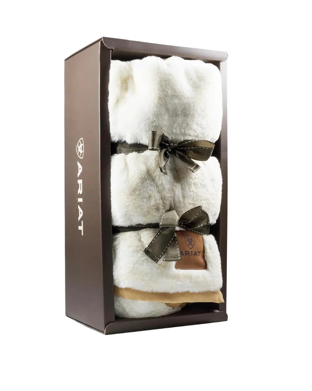 - GIFT BOX - The Ariat Snuggle Blankets are packaged in beautiful gift boxes to make gift-giving easier for you; In addition, the binding trim of the throw blankets perfectly matches the Ariat Snuggle Slippers for a great matching gift set