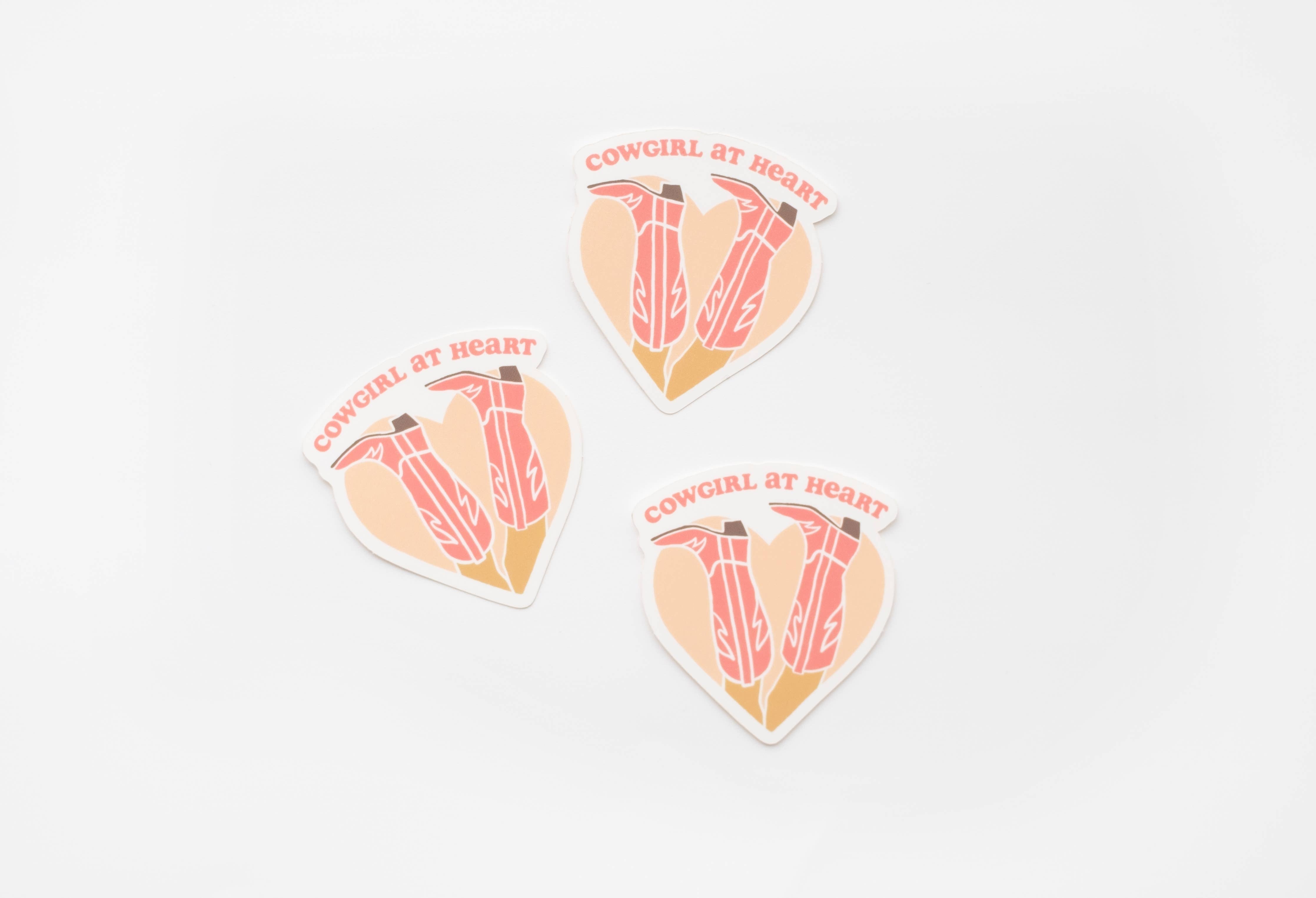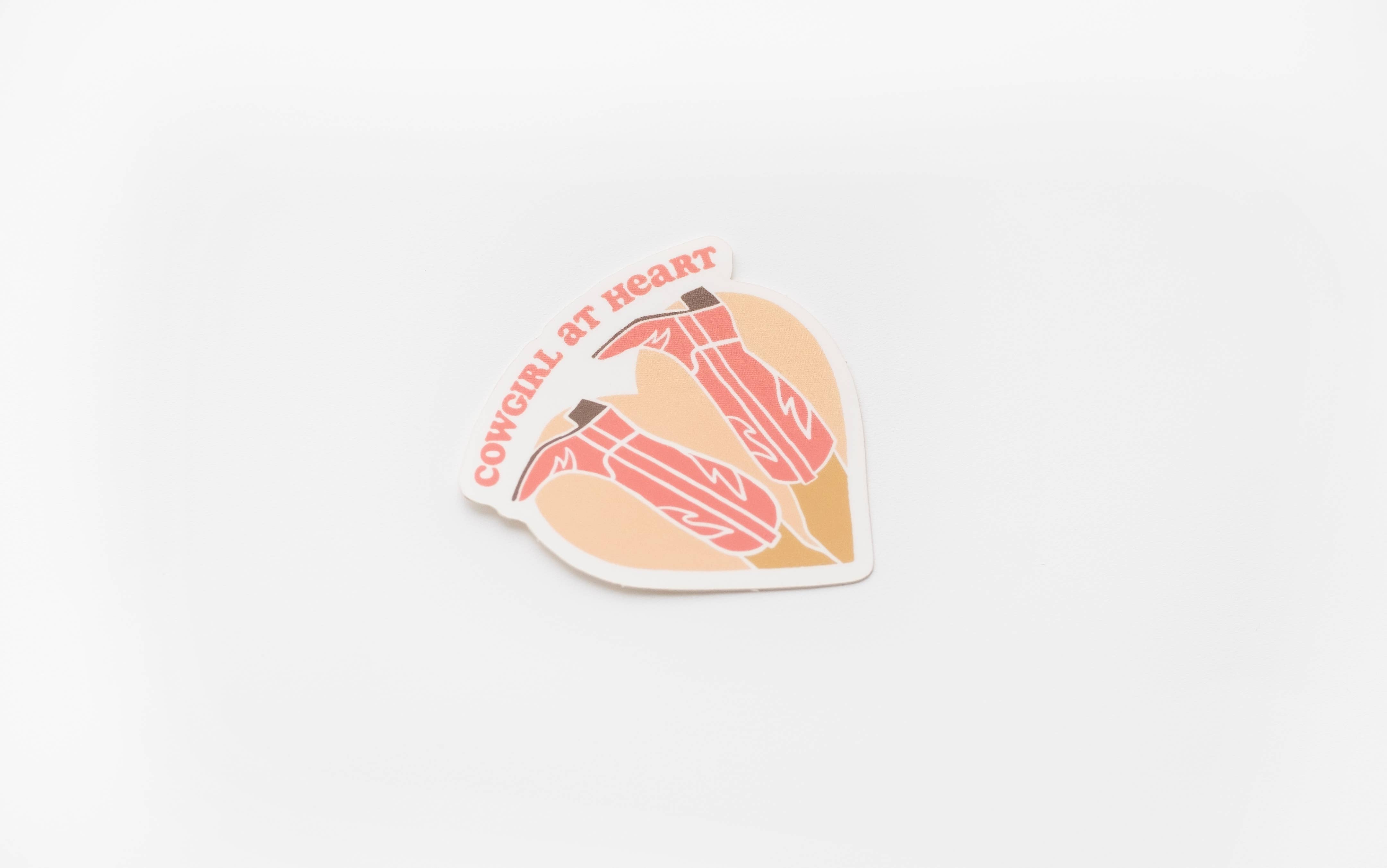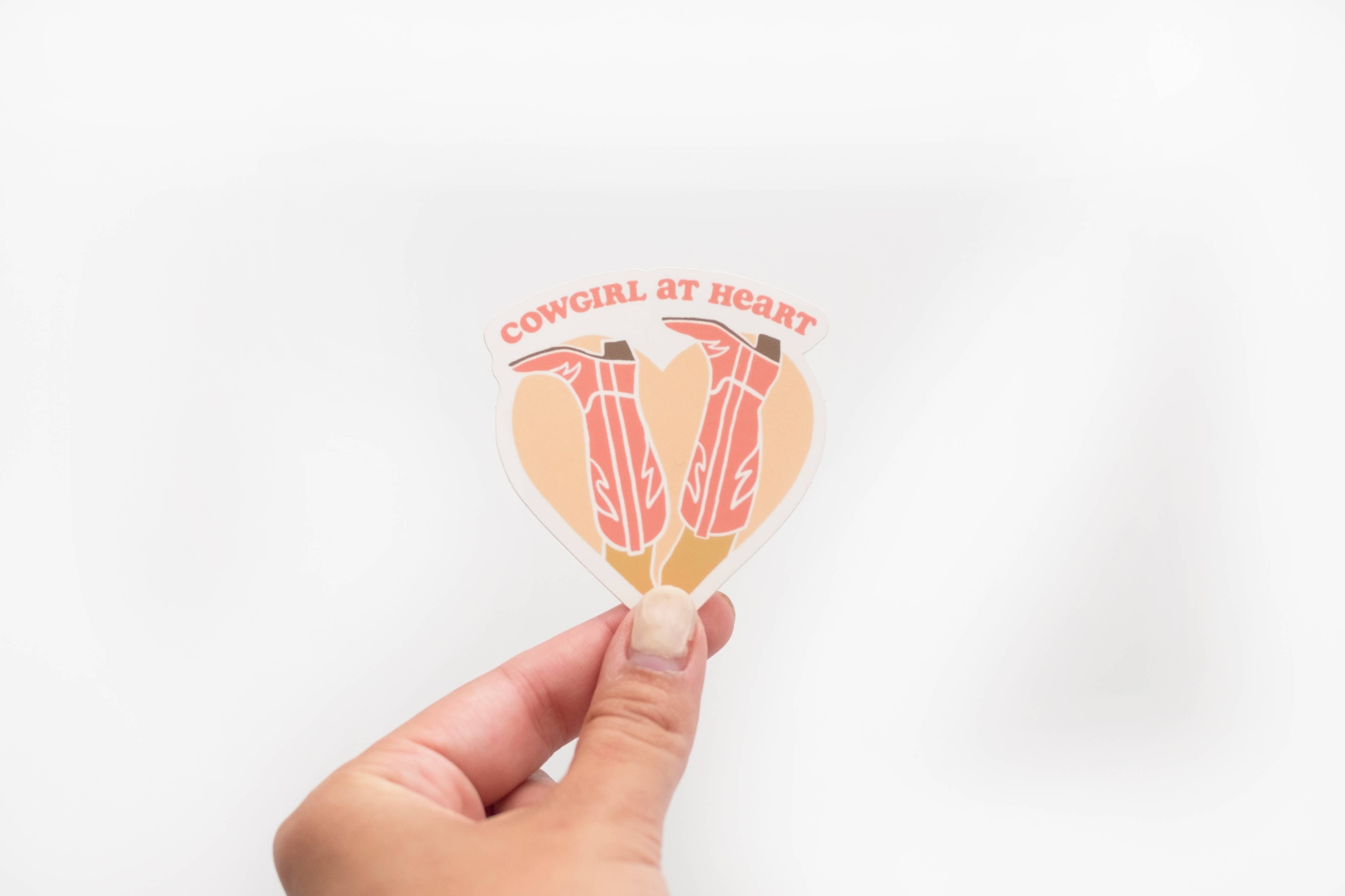 Introducing our "Cowgirl at Heart" Vinyl Sticker! 3 inches in size and crafted with exceptional quality, this sticker is waterproof and sunproof, ensuring it can withstand the harshest elements without fading or peeling. Dishwasher safe for your convenience, it's the perfect addition to your favorite water bottle, laptop, or car window, adding a touch of the Wild West with a feminine twist. Show off your inner cowgirl in style with this durable and eye-catching accessory.Â