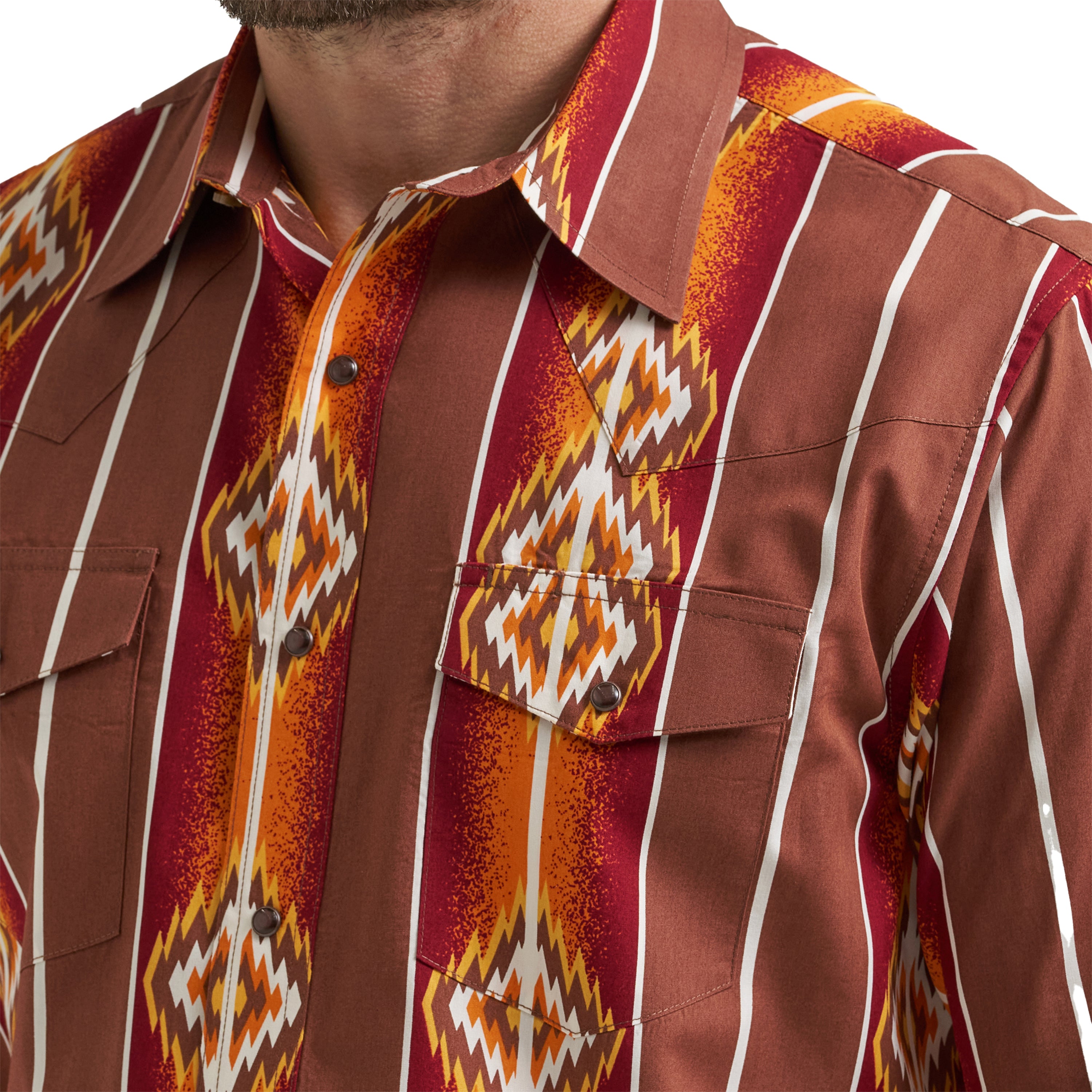 Experience the perfect blend of classic style and practical design with the Men's Checotah Western Long Sleeve Classic Fit Shirt. Crafted from 100% cotton, this brown multi-colored shirt offers breathable comfort and durability. Featuring authentic western yokes, a spread collar, and flap pockets with snap closures—including a pencil slot on the left pocket—it combines traditional charm and everyday functionality. The three-snap cuffs add a refined touch, making it an ideal choice for both work and casual wear. Elevate your wardrobe with this timeless Western shirt built to last.
