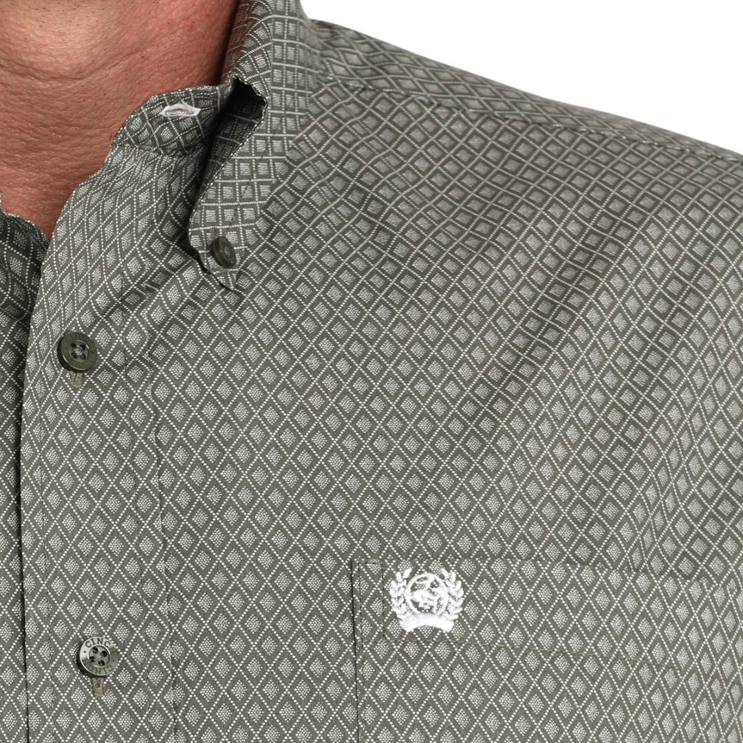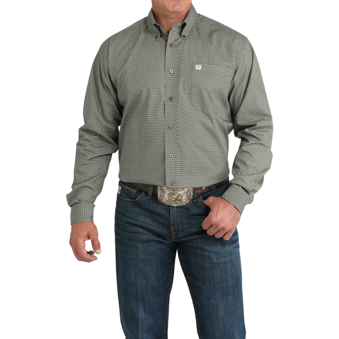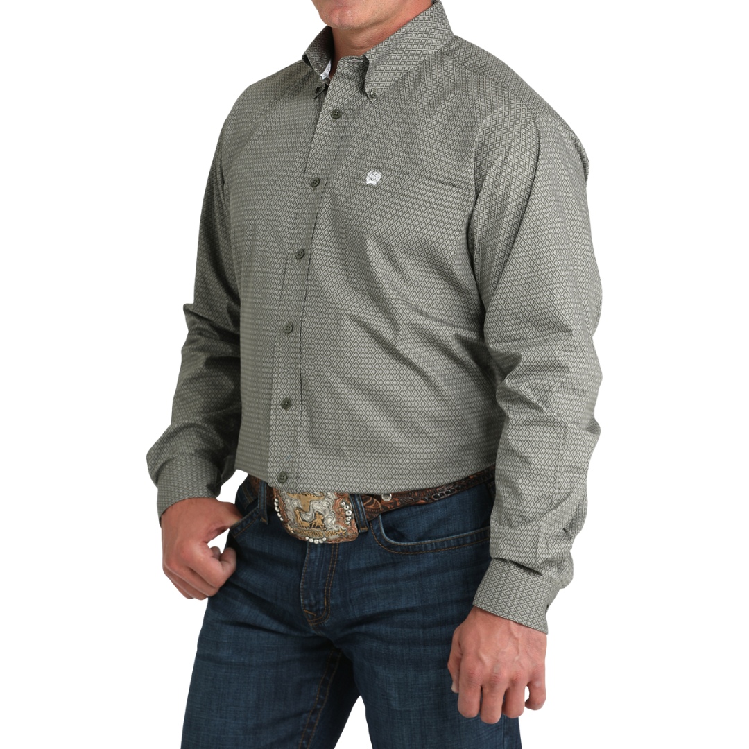 Men's Olive Diamond Print Long Sleeve Button Shirt MTW1105981
