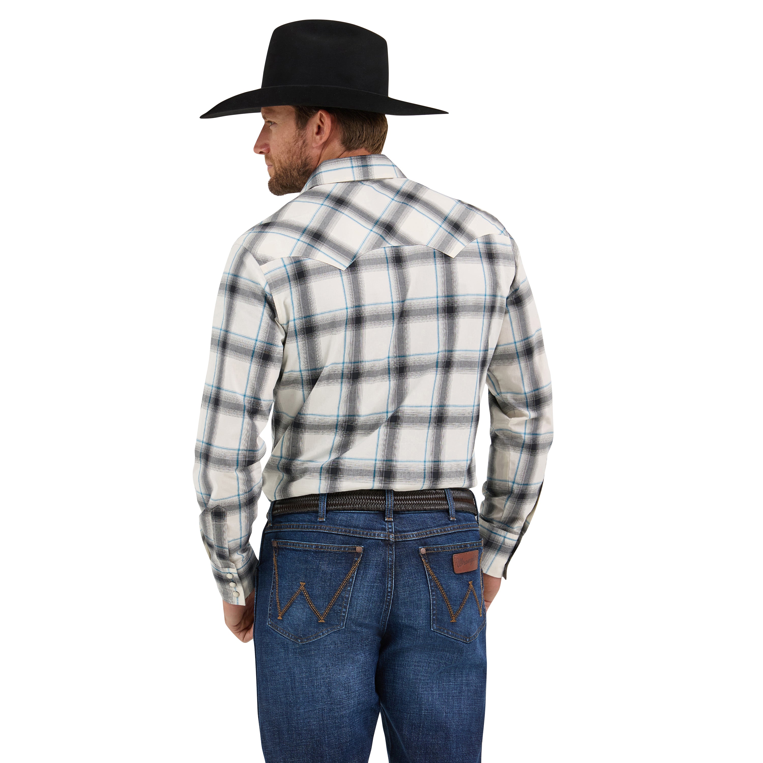Men's Wrangler Retro White Plaid Long Sleeve Modern Fit Shirt 112369552