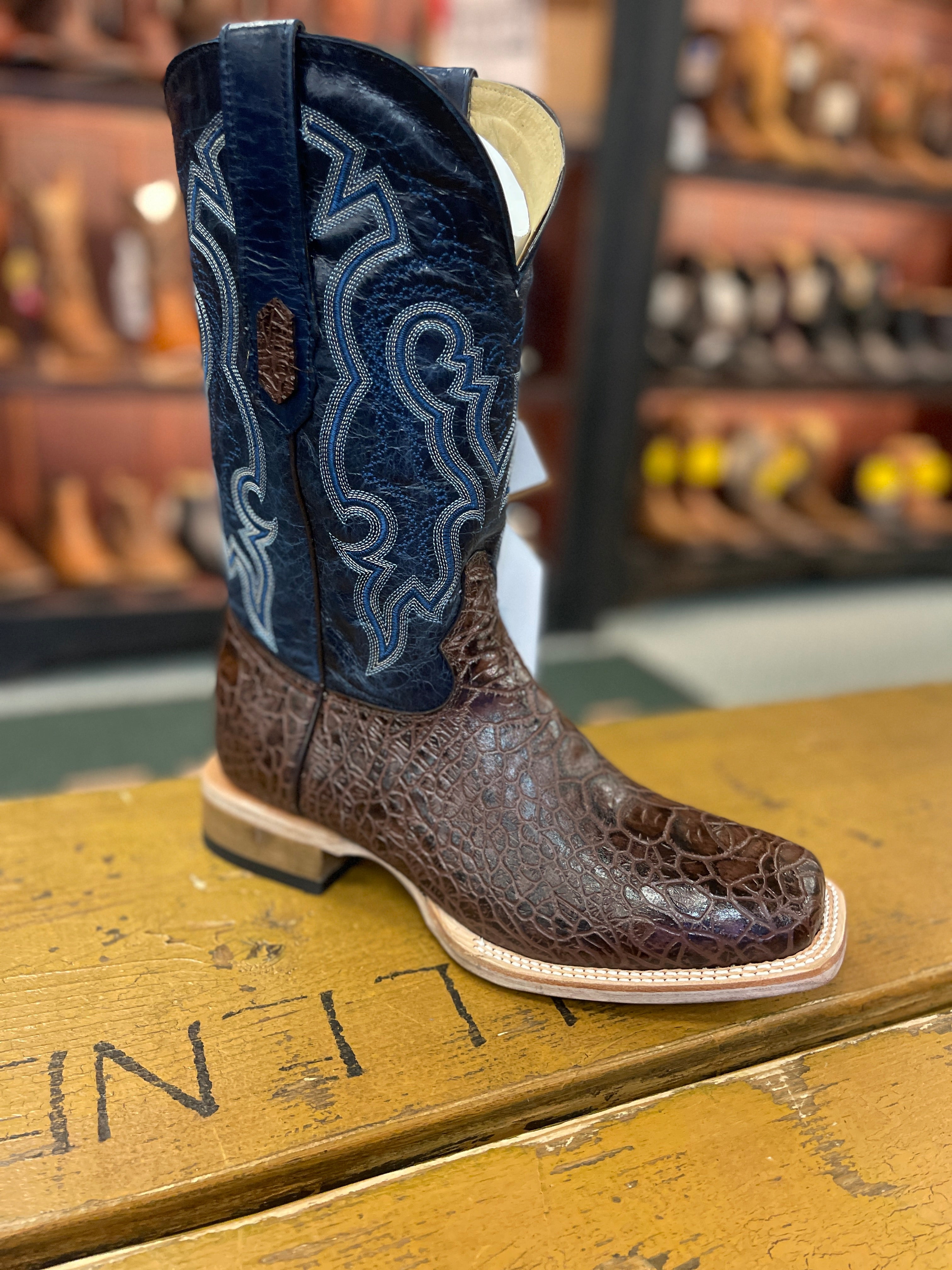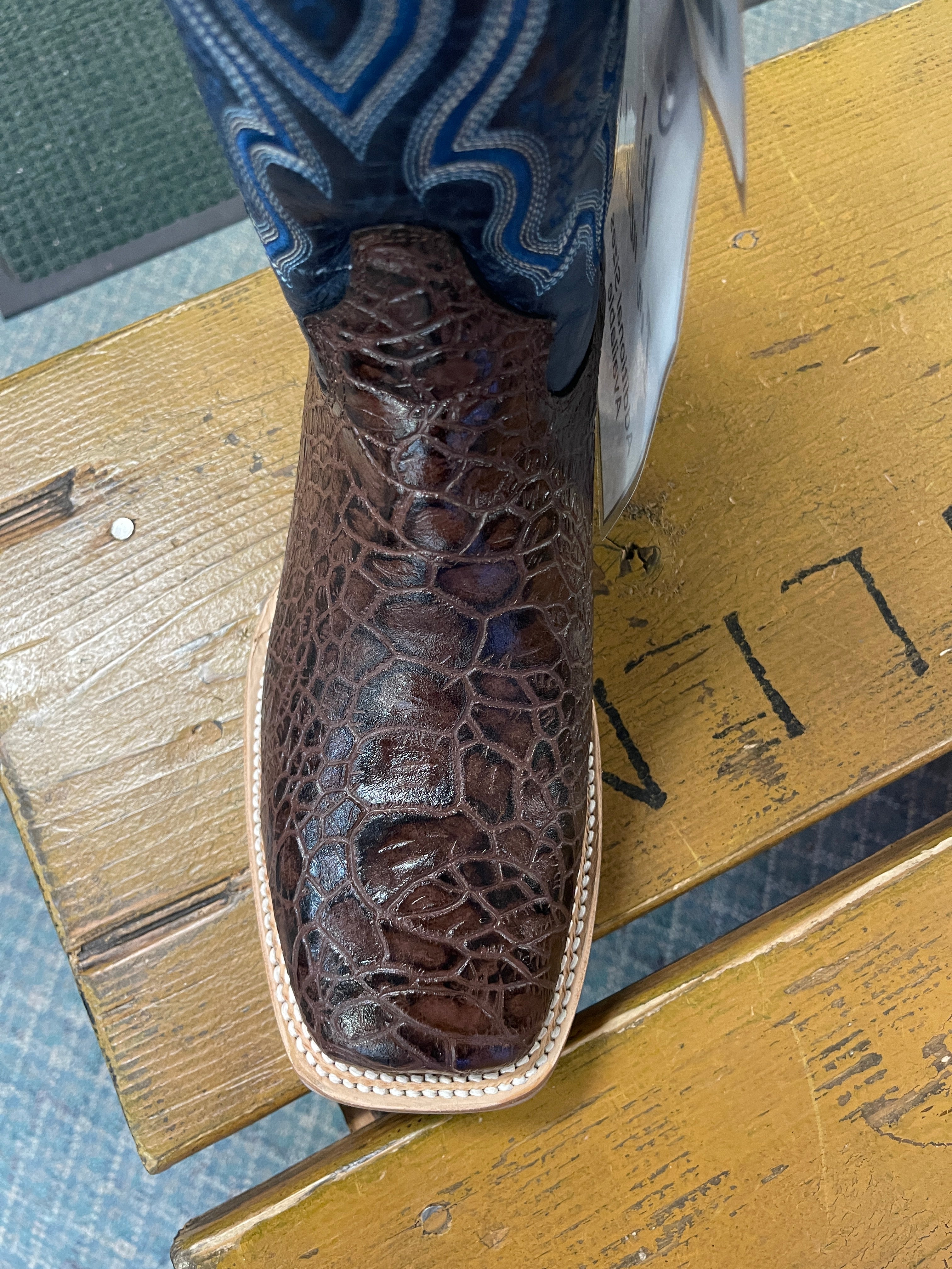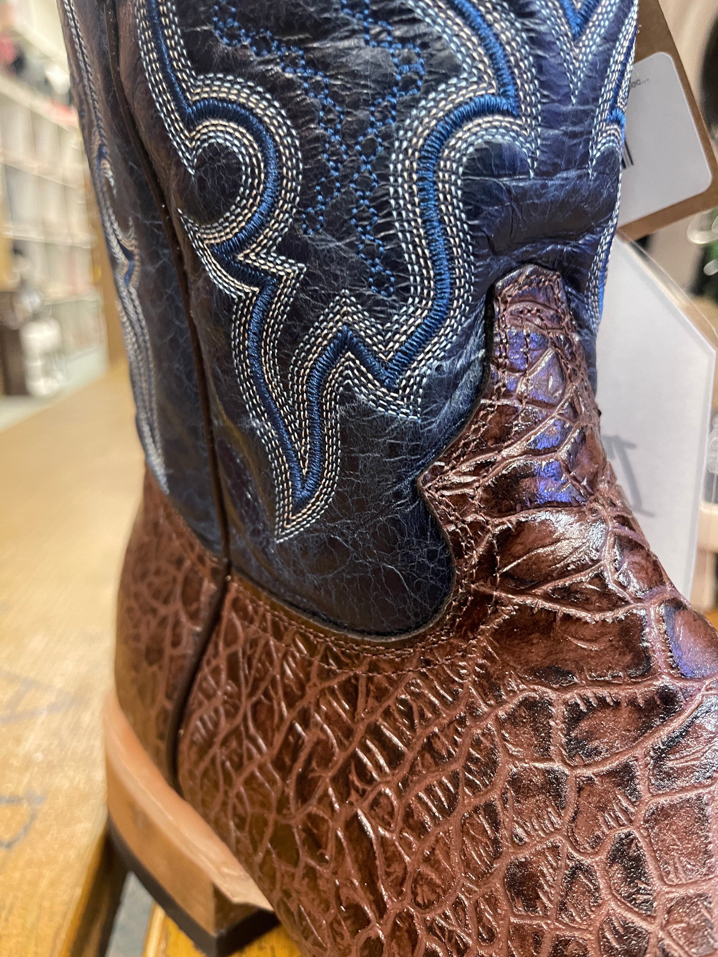 Step into Western sophistication with this striking men's boot featuring a rich brown leather top paired with a cognac sea turtle print vamp that commands attention. The distinctive square toe delivers authentic cowboy style, while the 1½-inch heel provides the perfect balance of comfort and classic Western attitude. Standing 13 inches tall, this boot offers substantial shaft coverage and support for all-day wear. Whether you're working the range or heading to town, the 6064 combines premium craftsmanship with eye-catching design that sets you apart from the crowd.