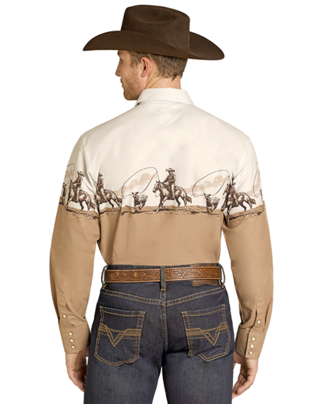 Men's Tan Cowboy Border Long Sleeve Snap Shirt SMN2S07678