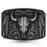 Wear timeless style with the Legend & Pride Buckle. This buckle features a majestic bull's head as the centerpiece of the buckle. Filigree can be seen on both sides of the bull figure. Detailed feathers sit on both sides to create a frame. This buckle will add flair to any outfit, as silver against a dark background creates mesmerizing contrast. This cast buckle has a standard 1.5 inch belt swivel.
