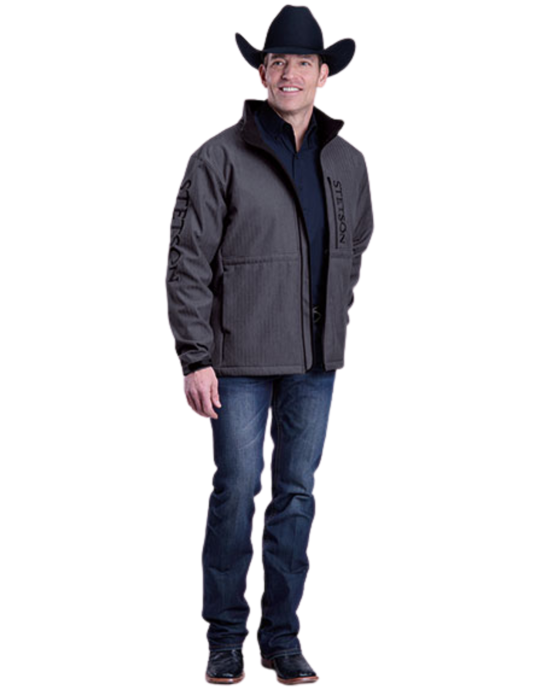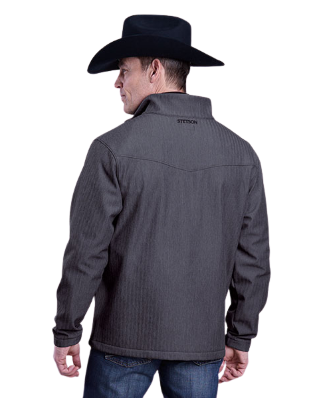 The Men's Charcoal Softshell Fleece Tech Jacket combines durable herringbone printed softshell bonded with cozy black fleece for reliable warmth and comfort. Featuring a 1-point back yoke for enhanced fit, adjustable cuff tabs to tailor your sleeve fit, a secure zippered chest pocket, and convenient side seam hand pockets, this jacket offers both style and functionality. Whether you're out on the town or exploring the outdoors, this tech jacket keeps you comfortable and prepared for any condition.