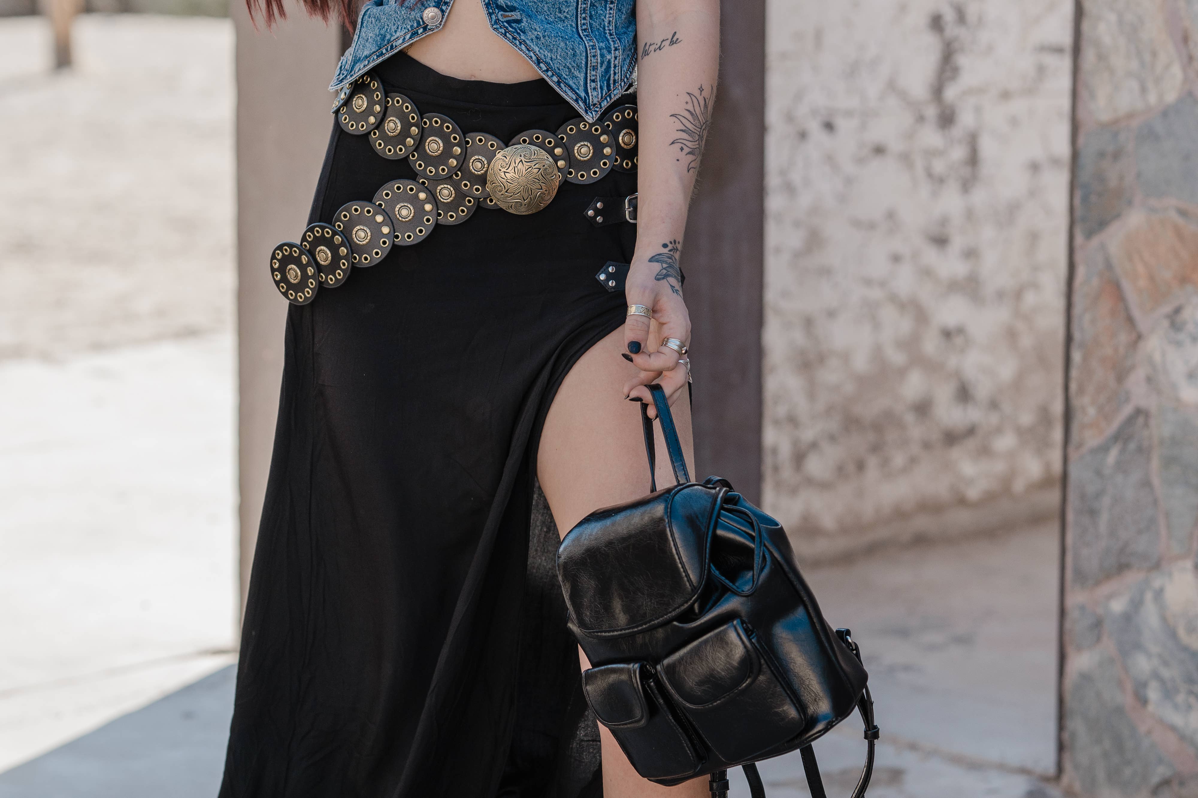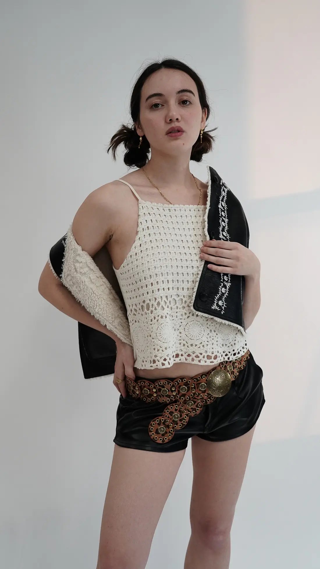 This caterpillar belt has a leather construct and features a circular metal clasp. This bold statement belt transforms any basic skirt or dress and gives it that perfect western flair. This belt style is available in black, tan, bone, and, new this year, red and leopard! Material: genuine leather Weight: ~8 oz Width: 6" Length: SM - 38.5" (US sizes 0-10) ML - 42.5" (US sizes 11-16)