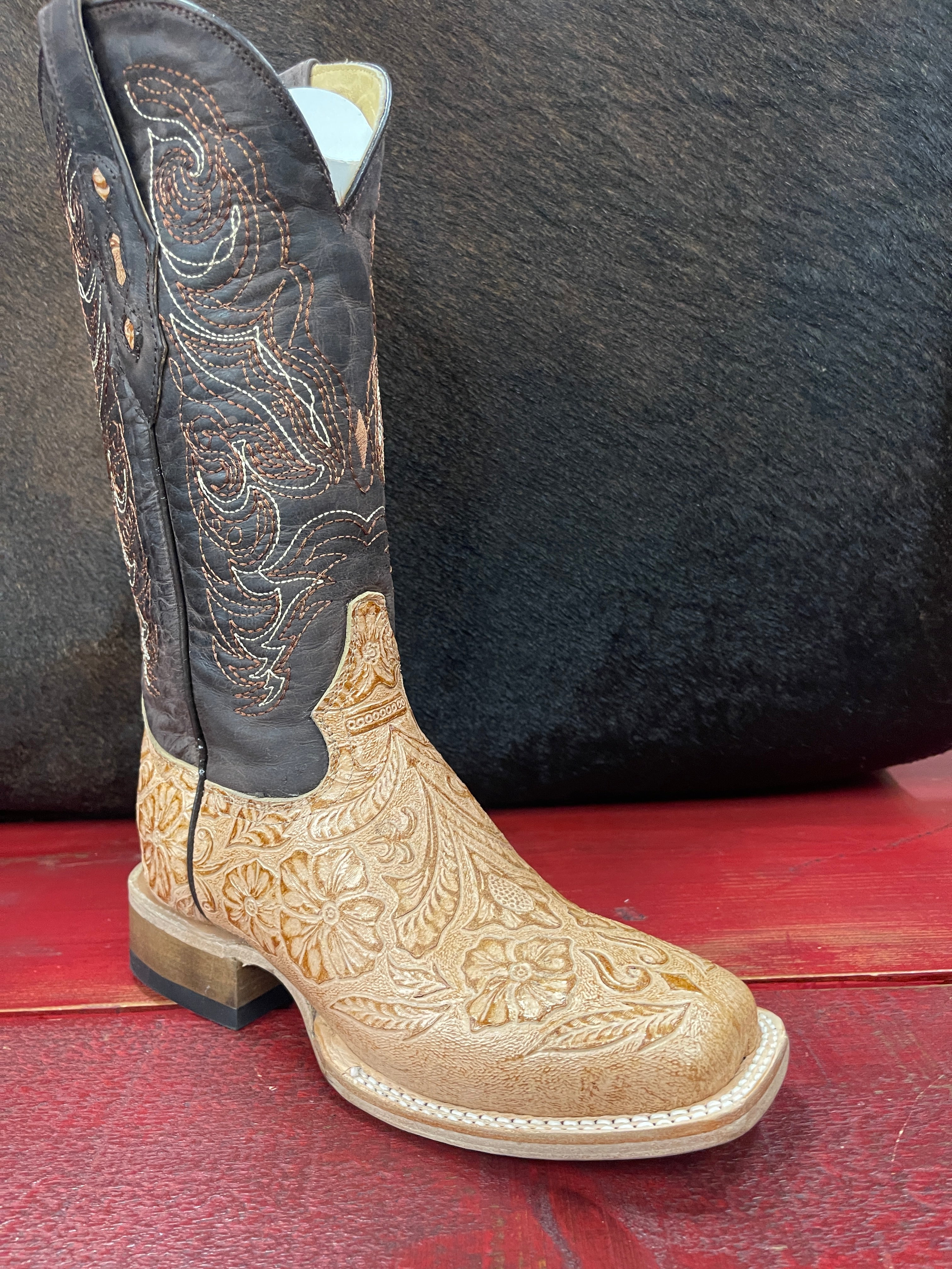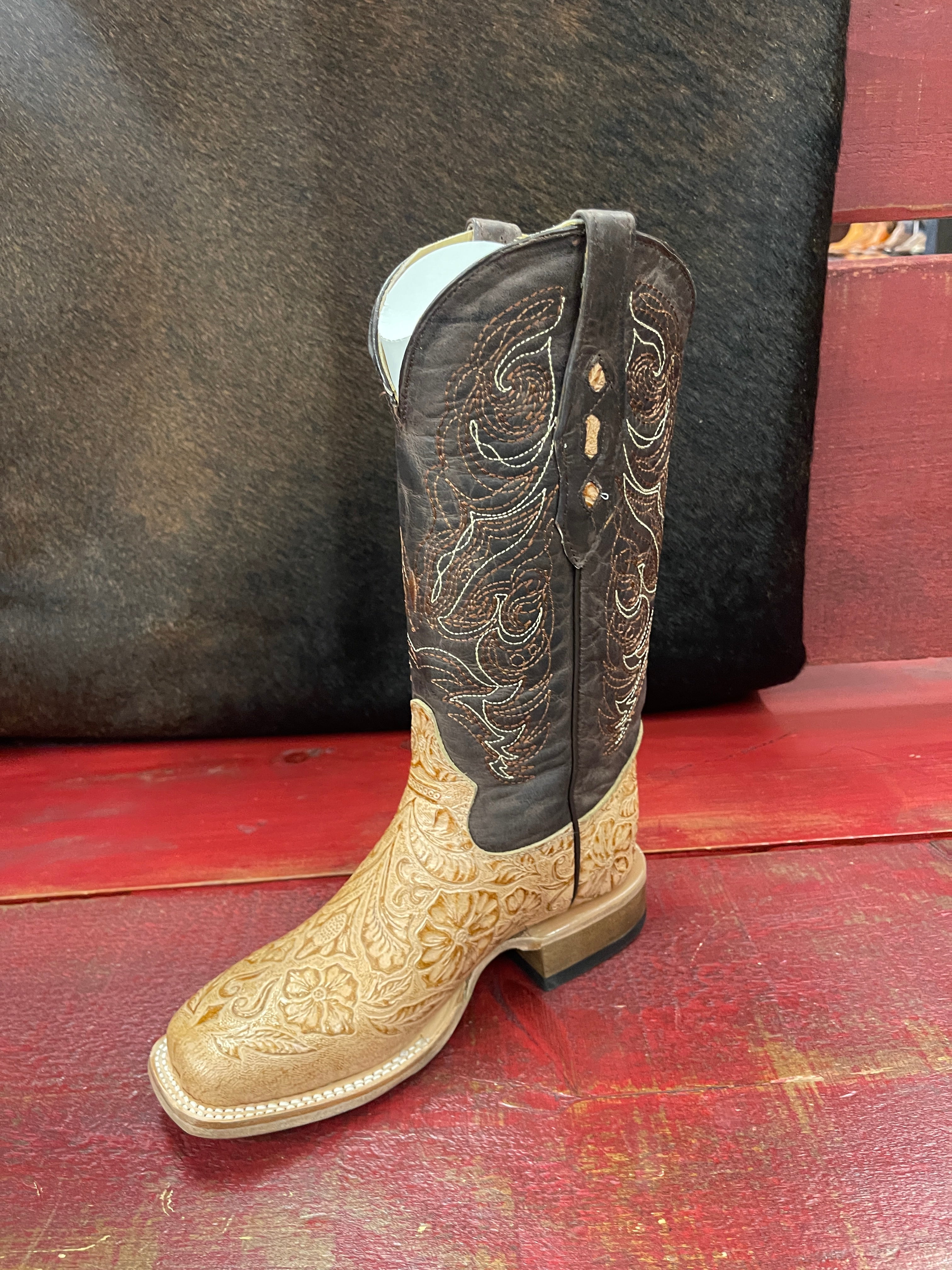 Women's Brown Oryx Tooled Vamp Square Toe Boot 452