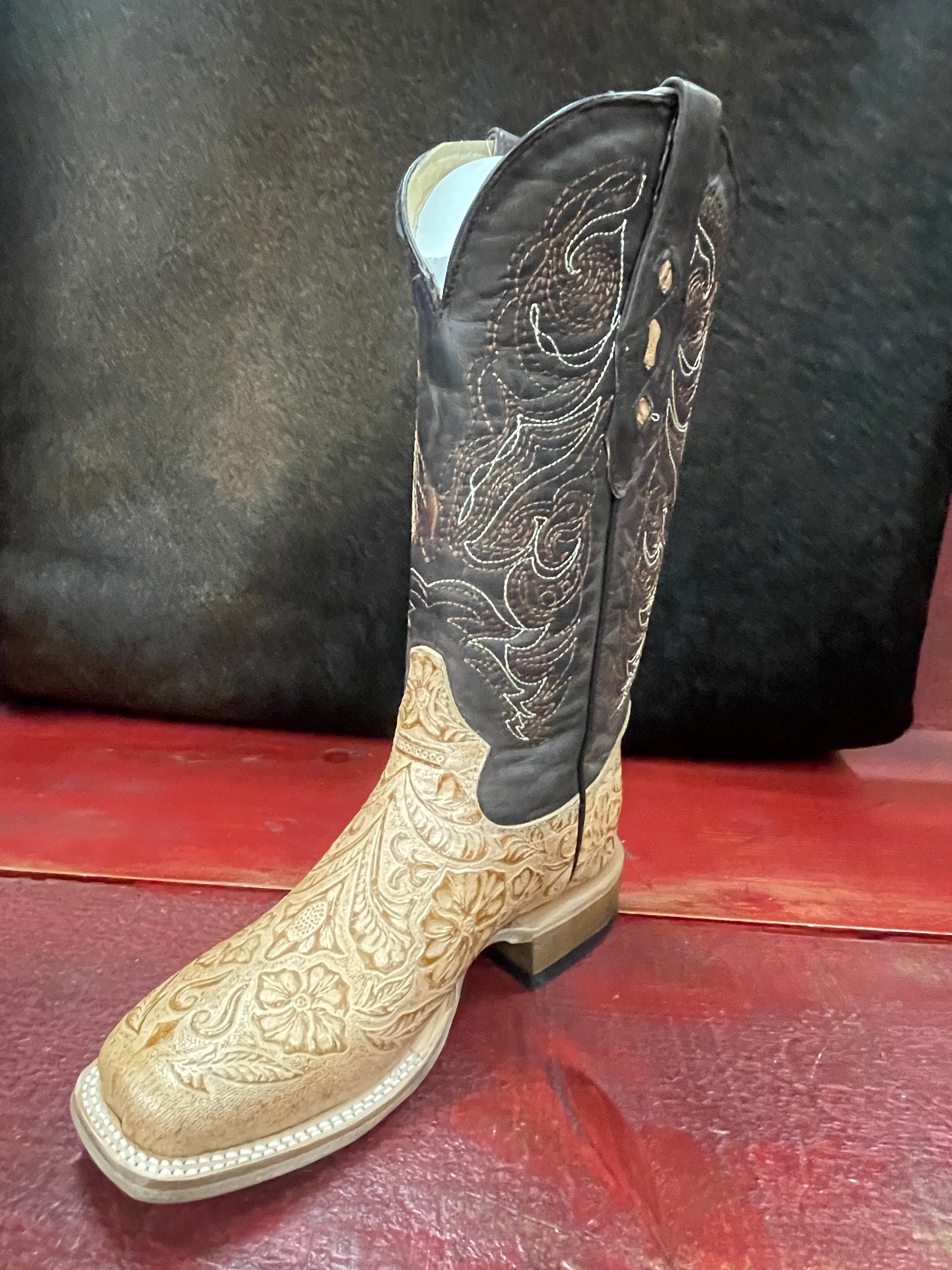 Step into timeless western style with this Women's Brown Oryx Tooled Vamp Square Toe Boot. Featuring a striking oryx tooled vamp that adds authentic character, this 12-inch boot combines classic cowboy aesthetics with modern comfort. The distinctive square toe design offers a contemporary edge while maintaining traditional western appeal, and the 1 1/4-inch heel provides the perfect balance of stability and style. Whether you're hitting the ranch or the town, this versatile brown boot delivers the quality craftsmanship and comfort you deserve.