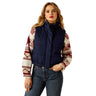 Embrace classic Western style with this Women's Blue Western Swirls Vest. Crafted from non-stretch slub denim and insulated with 240g warmth, it offers comfort without bulk. The signature Western yoke detail and convenient hand pockets combine style and practicality, while its shorter length ensures easy layering. Made from 100% cotton and designed for durable wear, this vest is perfect for chilly days on the ranch or casual outings. Easy-care instructions mean it’s hassle-free to maintain, making it a versatile addition to your wardrobe.