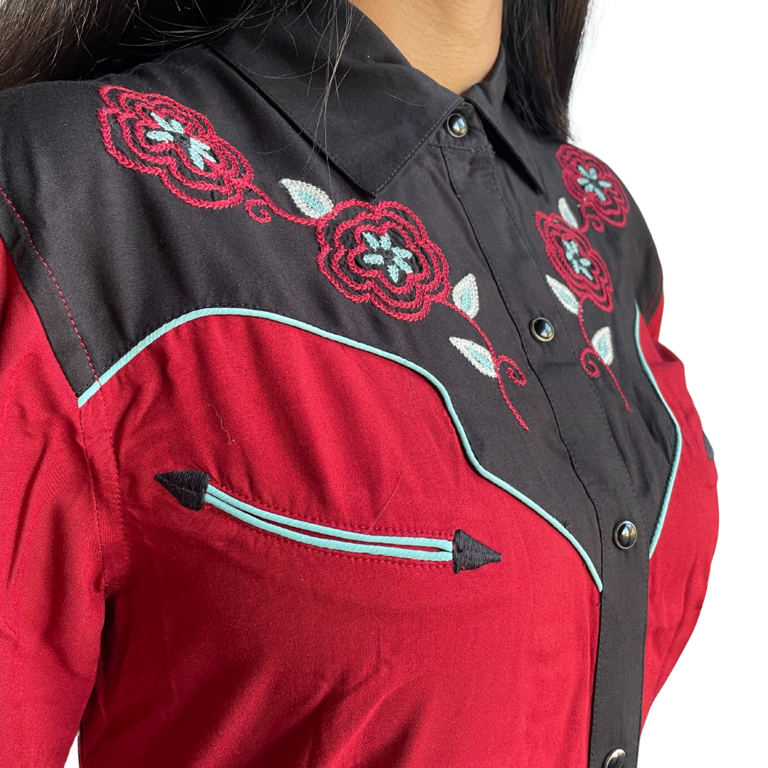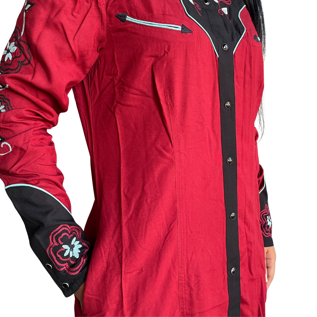 Women's Red Embroidered Retro Snap Dress LWD2R07116