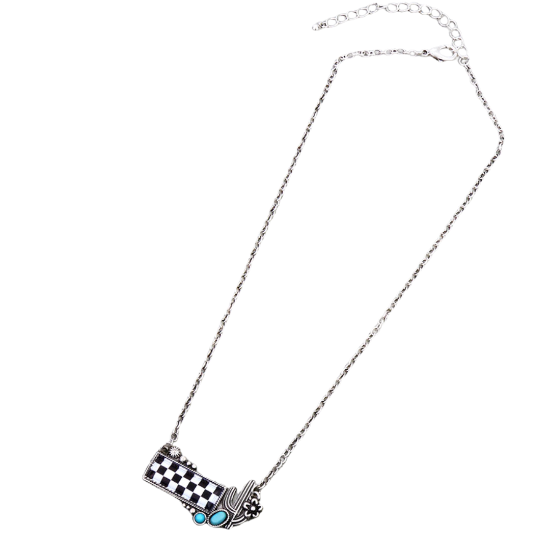 Checker Pattern Bar with Cactus Necklace WN1-04-AN3896/SBBW