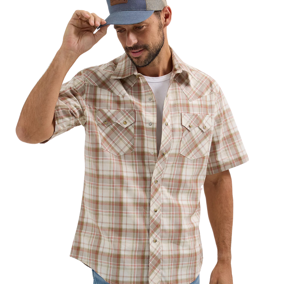 Hold onto quality when you put away those winter layers. This Wrangler® Retro® premium plaid short sleeve features a tailored fit, Western yokes, and attractive stitching for that something extra. Made with 100% cotton to retain its shape even with daily wear, this comfortable shirt has no shortage of Western authenticity.