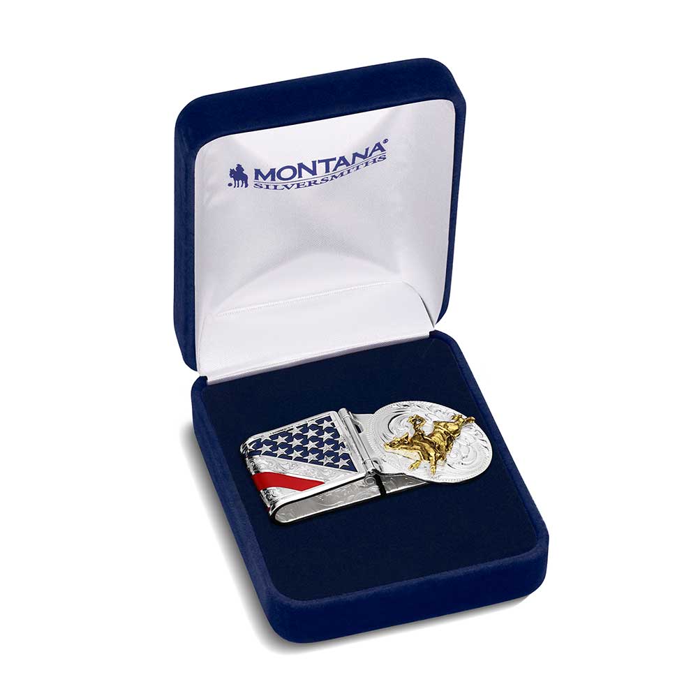 American Made Liberty Hinged Money Clip with Bull Rider AMMCL5973-330