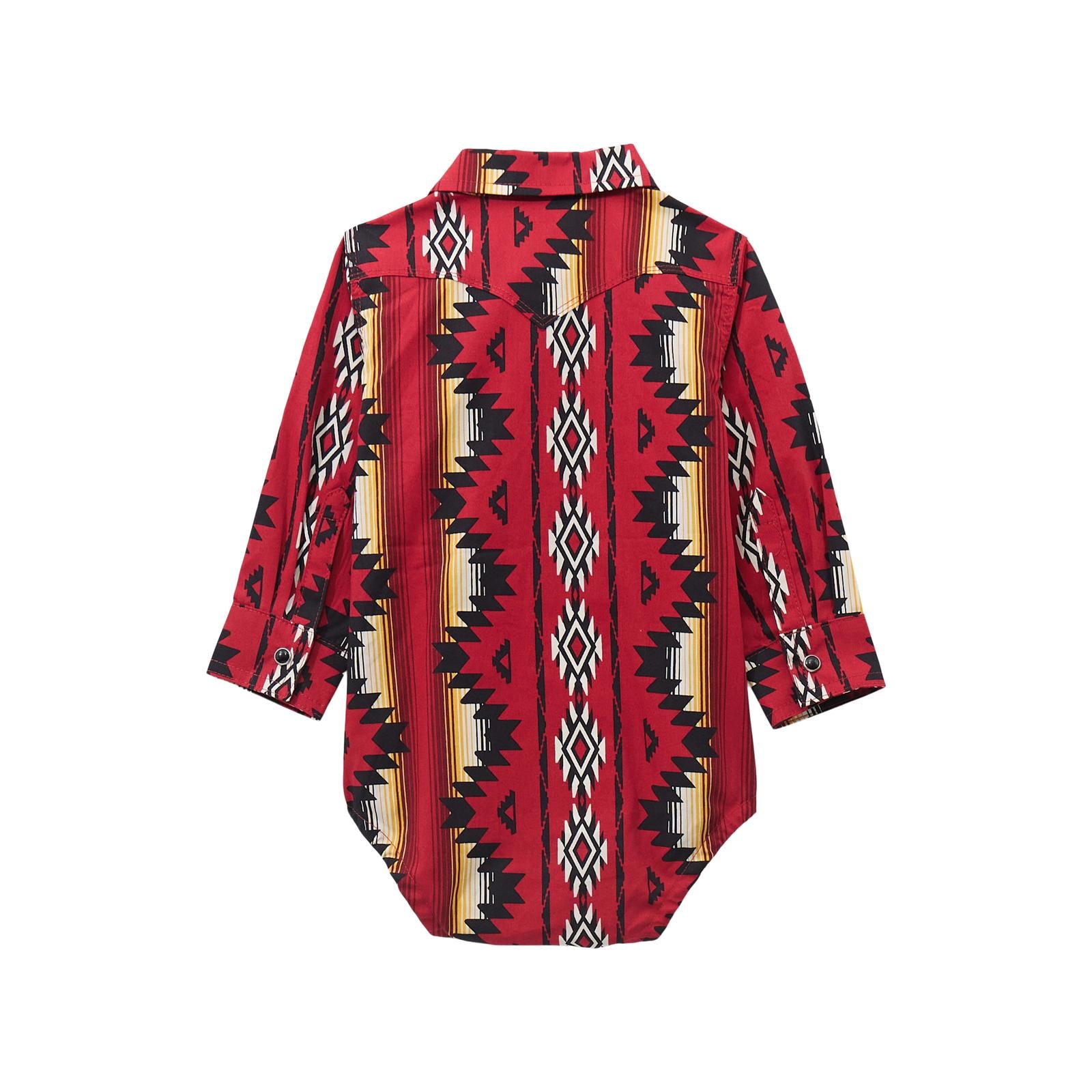 This long sleeve bodysuit for baby boys combines softness and stretch with 98% cotton and 2% spandex fabric, offering comfort and flexibility. Available in a Red Multi color, it's a versatile and essential piece for your little one’s wardrobe.