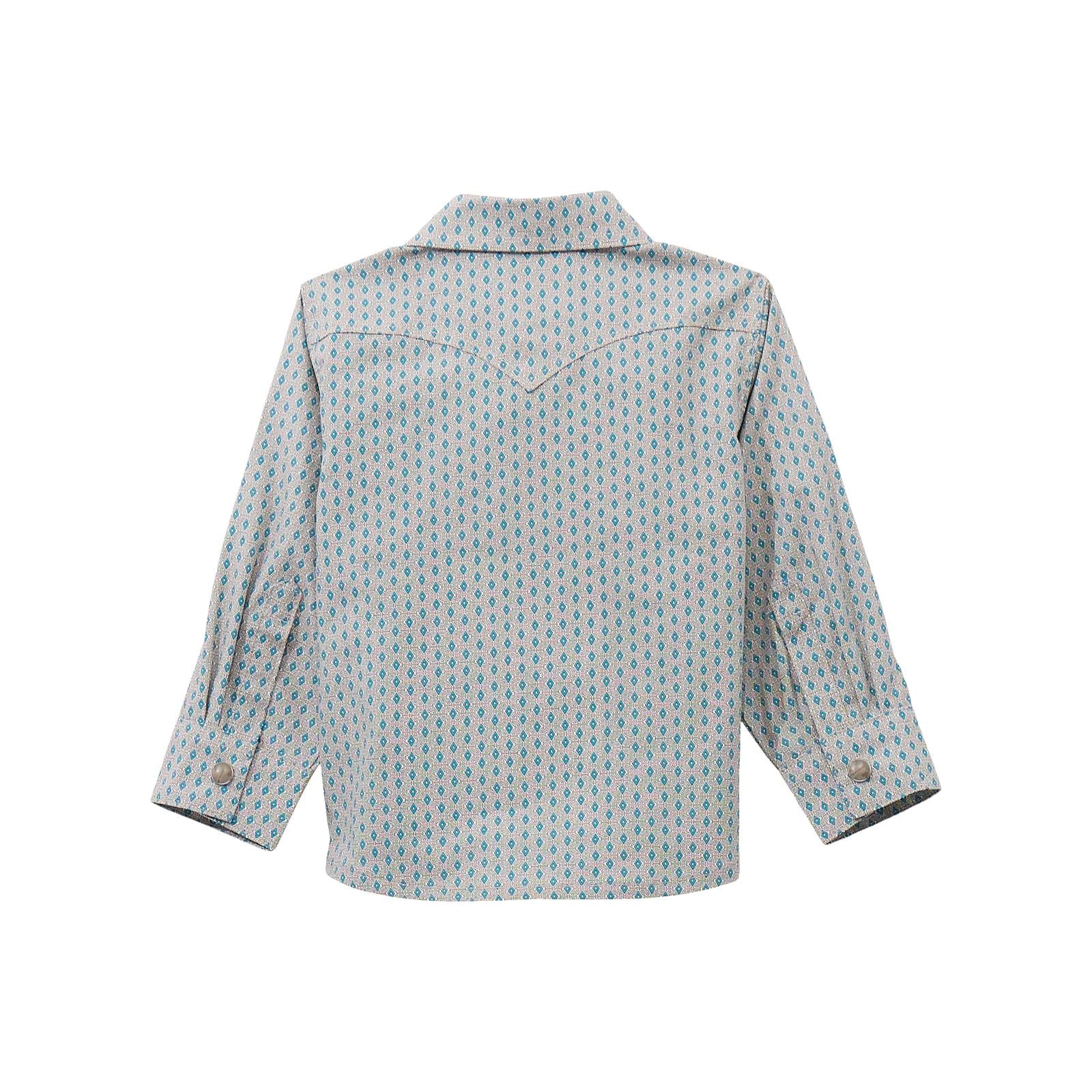 This long-sleeve shirt for baby boys comes in a stylish grey and blue color. Made from 100% cotton, it offers soft, breathable comfort all day. Designed with convenient snaps, it makes dressing your little one quick and easy.