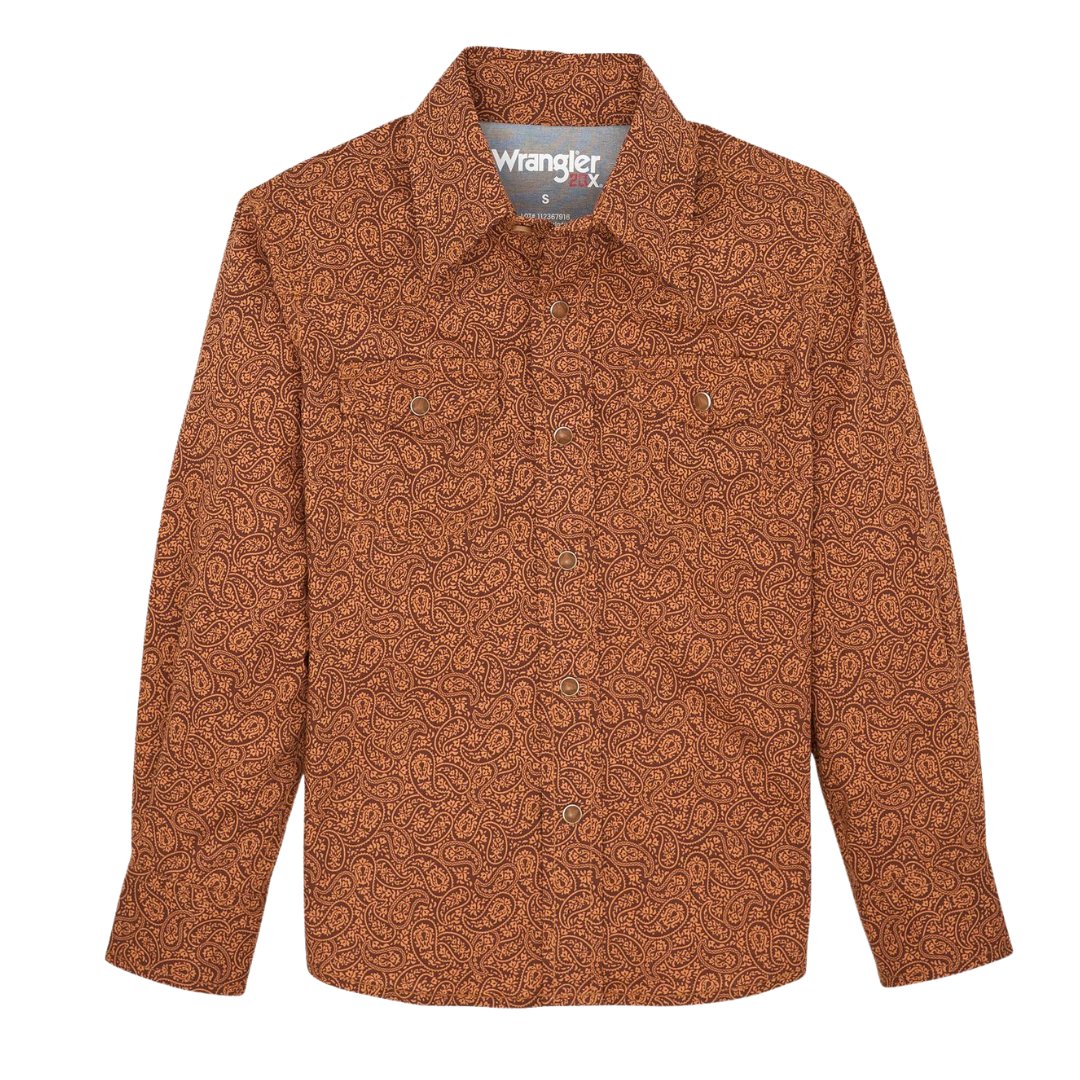 This Boys 20X Advanced Comfort Long Sleeve Shirt in Rustic Brown offers a perfect blend of style and comfort. Made from a soft, flexible fabric with 98% cotton and 2% spandex, it ensures ease of movement throughout the day. The classic spread collar and western yokes give it a timeless look, while two snap flap pockets and snap cuffs add practical details. Contrast stitching enhances its rugged appeal, making it an ideal choice for boys who want durable, stylish wear.