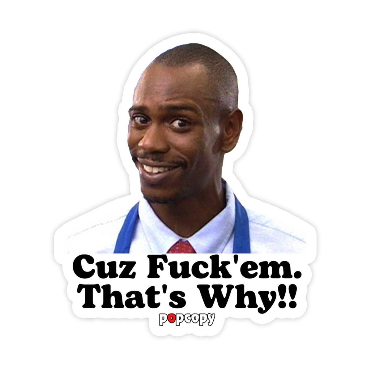 Dave Chappelle Sticker, Popcopy, Cuz F Em That's Why Sticker, Meme Sticker, Waterproof Vinyl Sticker For Waterbottle and Laptop