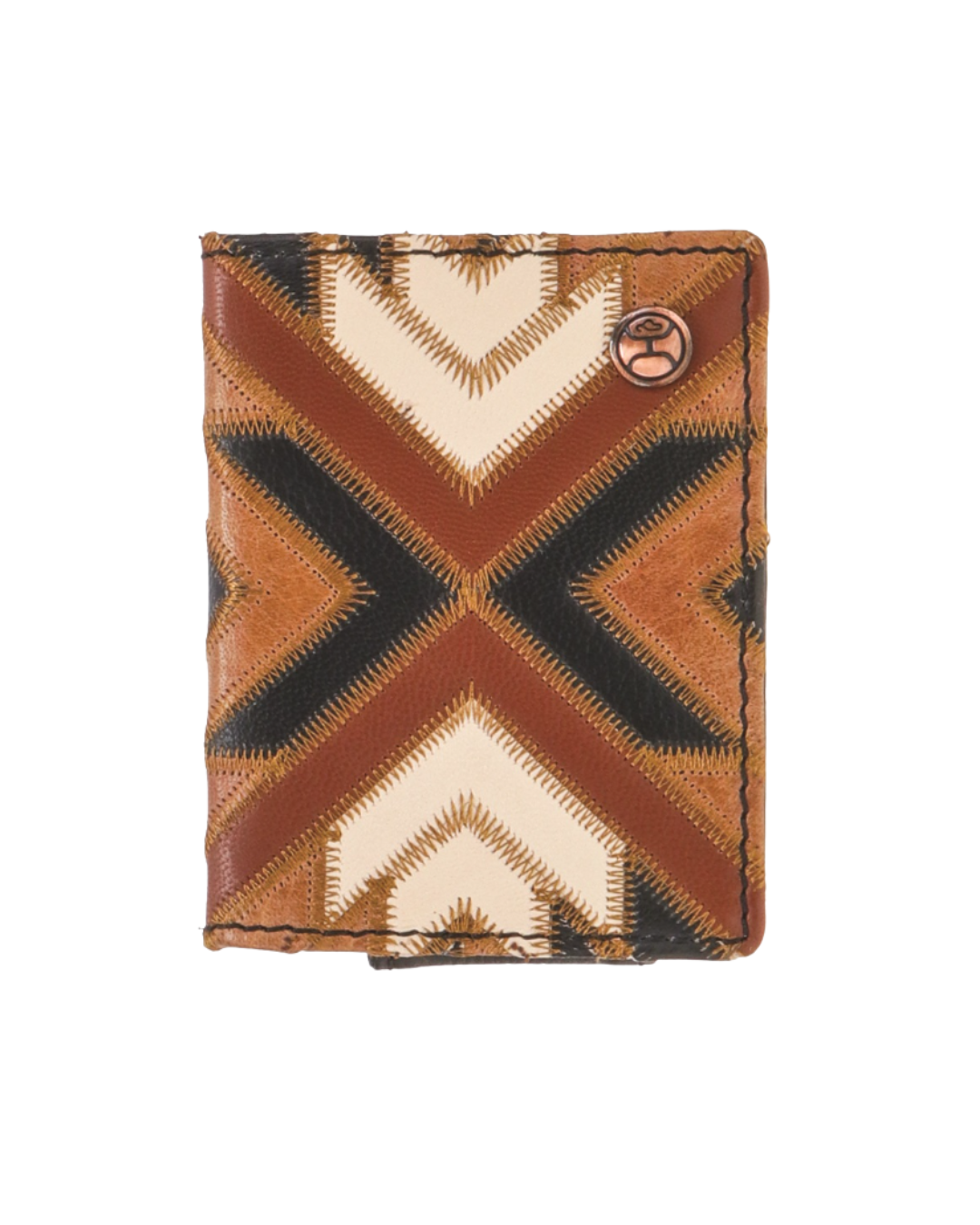 Montezuma Patchwork Leather Bi-Fold Money Clip Wallet with Hooey Logo Rivet HFBF007-BRBK